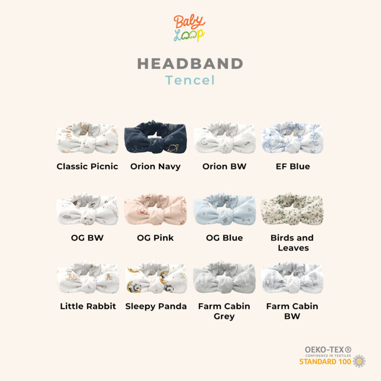 At a glance Headband Knot Bow Baby Loop terbuat dari serat TENCEL(TM) Modal, adem dan nyaman, dengan desain dan warna