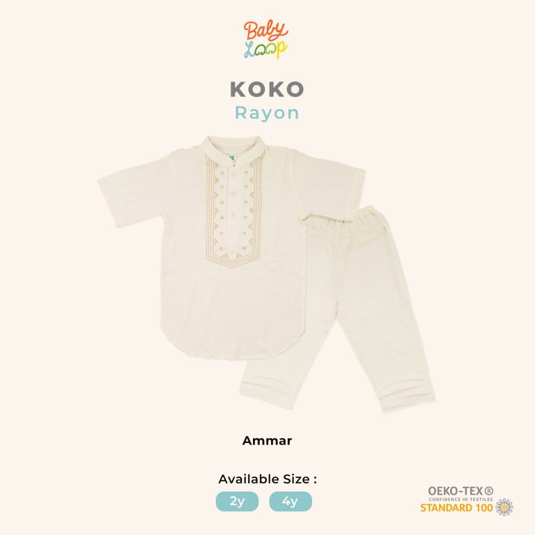 At a glanceAmmar koko set berbahan natural fiber, adem dan nyaman, dengan desain dan warna yang menarik. Baju lengan panjang