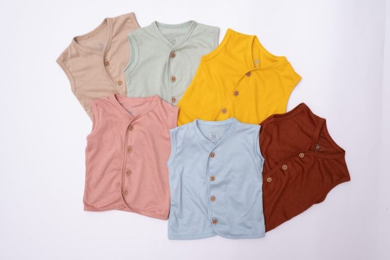 “Bahan : katun bambu Warna:– dusty blue– dusty pink– sage– mustard– beige– teracotta Size : 0-3m : Panjang Baju 25cm,