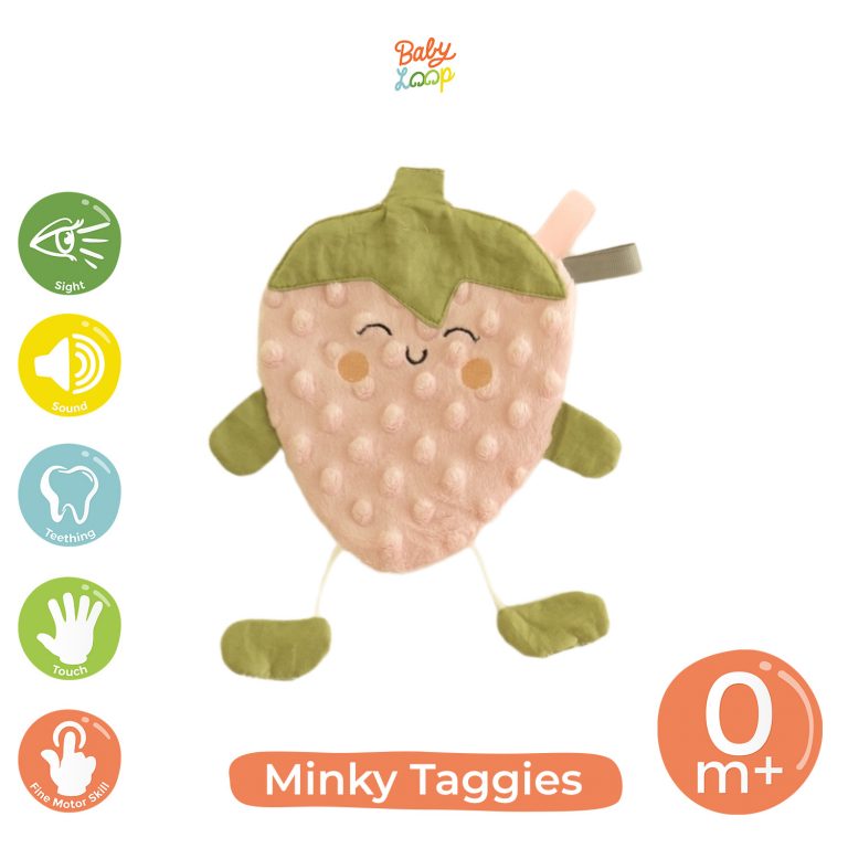 Minky Taggies Strawberry – Mainan Sensori – Baby Loop
