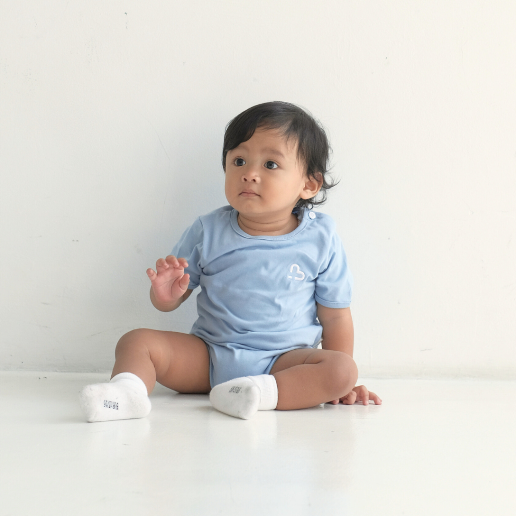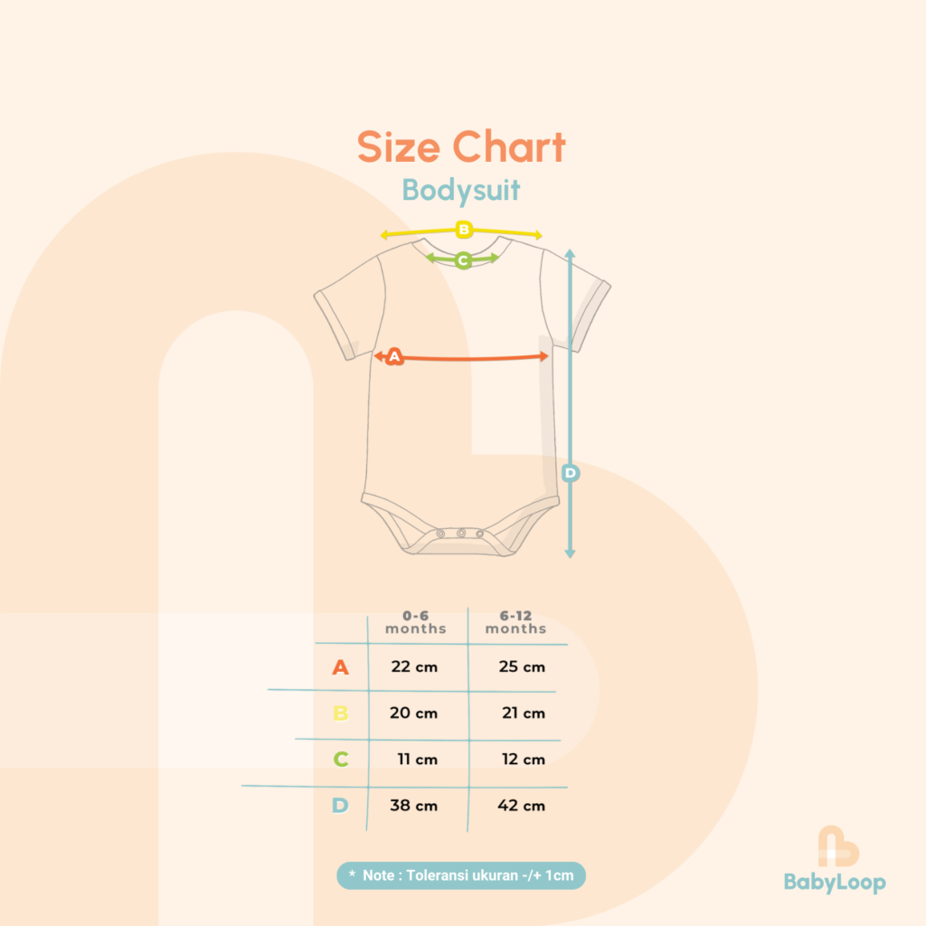 Bodysuit Bamboo Baby Loop terbuat dari katun bambu dengan serat yang sangat lembut, menyerap keringat, anti bakteri dengan berbagai pilihan warna yang menarik, seperti warna broken white, dusty blue, dusty pink, silver, beige. Baju terusan lengan pendek dengan bordir logo Baby Loop di bagian dada dan bukaan kancing di bagian bawah untuk mempermudah penggantian popok.