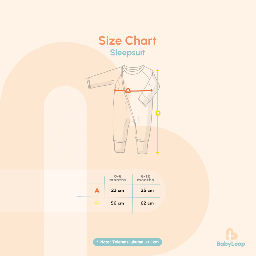 Sleepsuit Baby Loop terbuat dari katun bambu dengan serat yang sangat lembut, menyerap keringat, anti bakteri dengan berbagai pilihan warna yang menarik, seperti warna broken white, dusty blue, dusty pink, silver, beige. Baju tidur terusan lengan panjang dilengkapi penutup tangan dan bagian bawahnya celana panjang yang menyatu, dilengkapi double zipper untuk mempermudah penggantian popok.