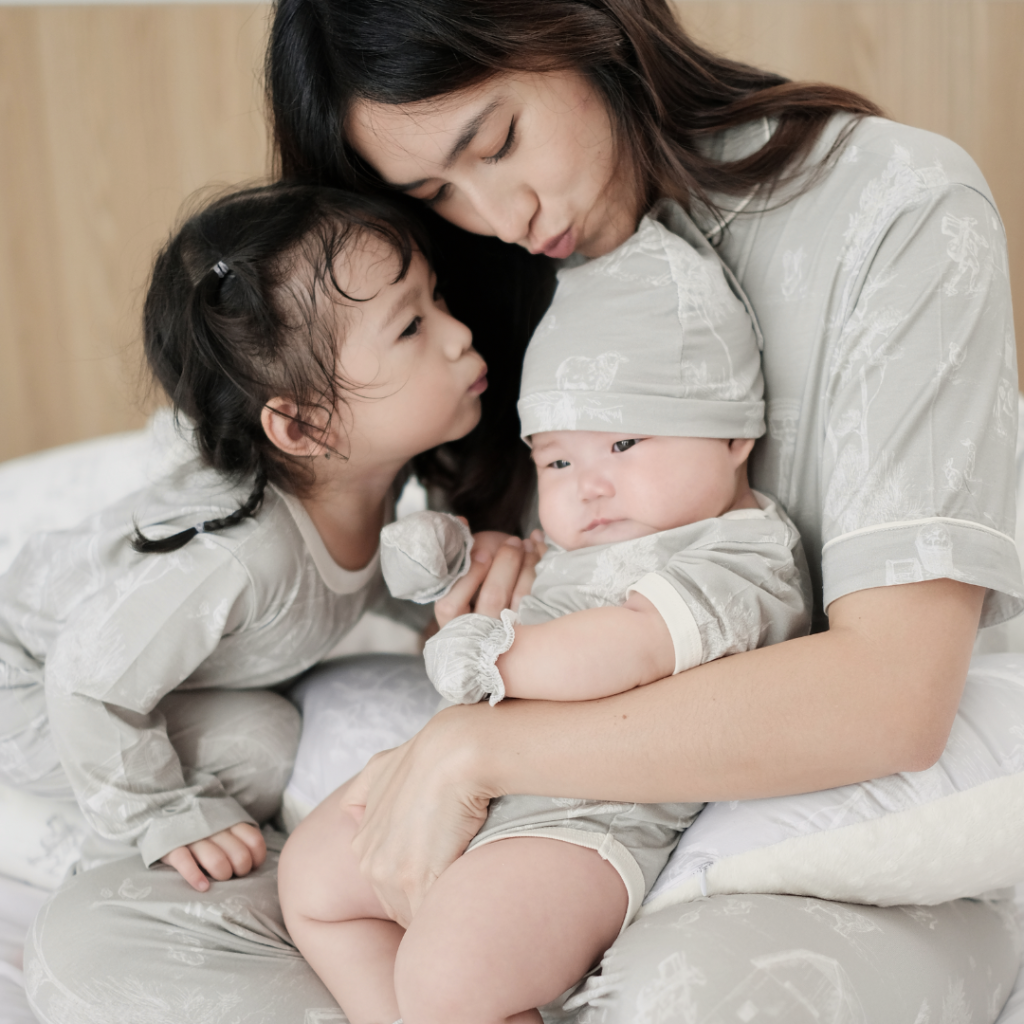 Pajamas Baby Loop terbuat dari serat TENCEL(TM) Modal, adem dan nyaman, dengan desain dan warna yang menarik. Baju lengan pendek dan celana pendek dengan pattern karakter Baby Loop.