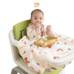 – Terbuat dari kain tahan air (water repellent), halus dan adem, menjaga baju si Kecil dan meja dari kotoran dan noda makanan