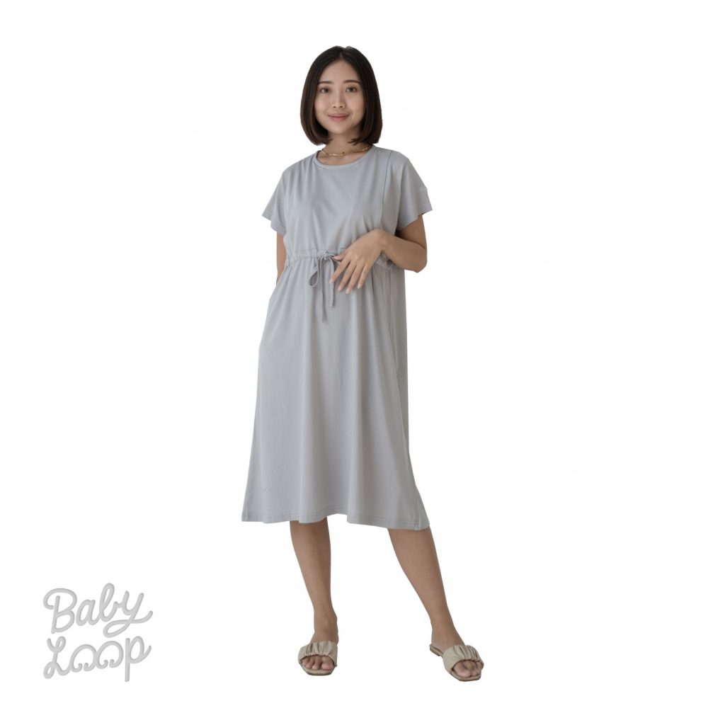 Everyday Nursing Wear Dress terbuat dari katun bambu, adem dan nyaman, dengan desain dan warna yang menarik, dilengkapi dengan bukaan menyusui yang membuat kegiatan menyusui mudah dan aman. Baju terusan lengan pendek dengan bordir khas Baby Loop pada bagian lengan (kiri) dan detail tali serut pada bagian pinggang.