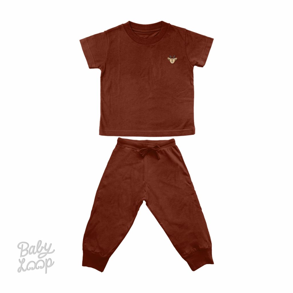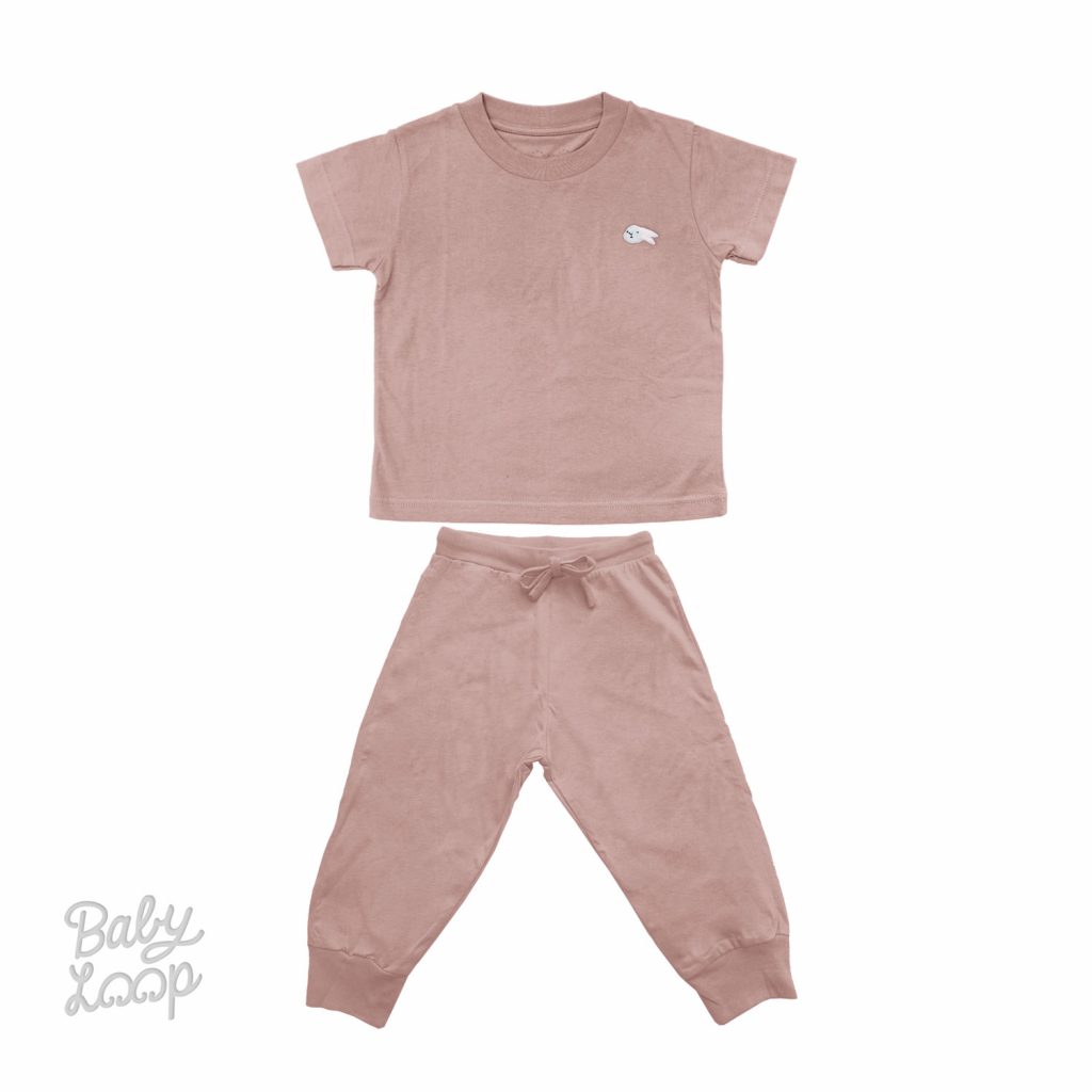 Playsuit Baby Loop terbuat dari katun bambu dengan serat yang sangat lembut, menyerap keringat, anti bakteri dengan desain dan warna yang menarik. Baju lengan pendek, kerah berbentuk bulat, dengan bordir karakter Baby Loop pada bagian dada (kiri), dan celana panjang dengan karet bagian “opening leg” (jogger pants).