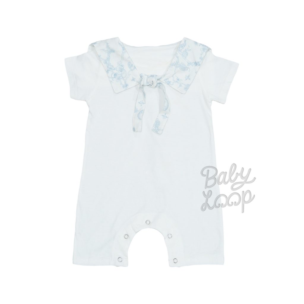 Romper Enchanted Forest terbuat dari katun bambu dengan serat yang sangat lembut, menyerap keringat, anti bakteri dengan desain dan warna yang menarik. Baju terusan lengan pendek, detail kerah sailor dengan pattern classic, dan bagian bawahnya celana pendek yang menyatu, dilengkapi kancing untuk mempermudah penggantian popok.