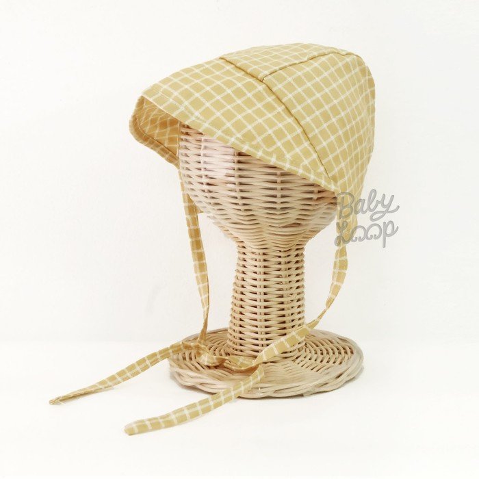 Topi bonet bayi yang nyaman dipakai oleh bayi dan tidak menimbulkan efek alergi dikulit.